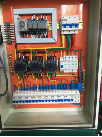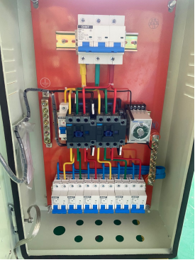 配电设备采用交流三相五线制,LED显示屏配电柜是将三相分成三路相零电压供显示屏使用,可以在控制室远程控制配电设备,开关LED显示屏。