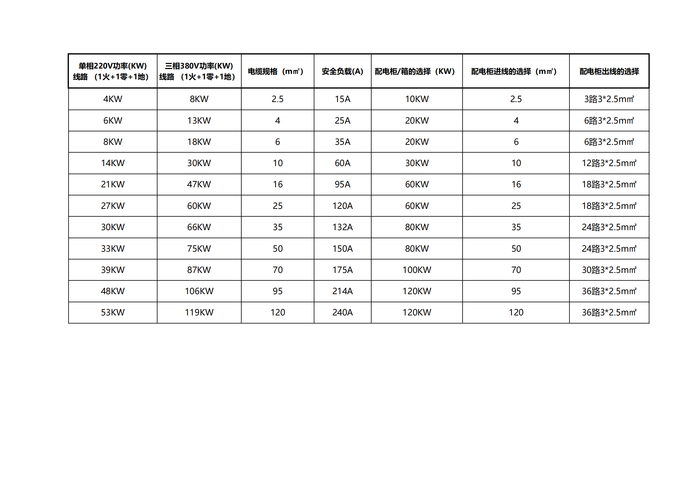以下是配电箱选择对照表