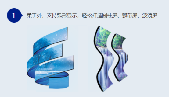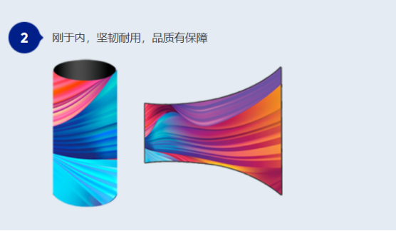 柔于外,轻松打造圆柱屏、波浪屏、飘带屏、弧形屏刚于内,坚韧耐用,品质有保障。
