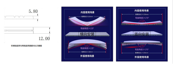 2、软模组厚度较常规模组薄,与常规模组搭配同一面屏时,屏体结构对应的部分需进行增厚注