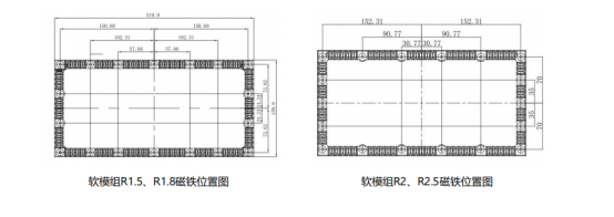 软模组R1.5、R1.8和软模组R2、R2.5无法共用硅胶底壳,所以磁铁位置不同。