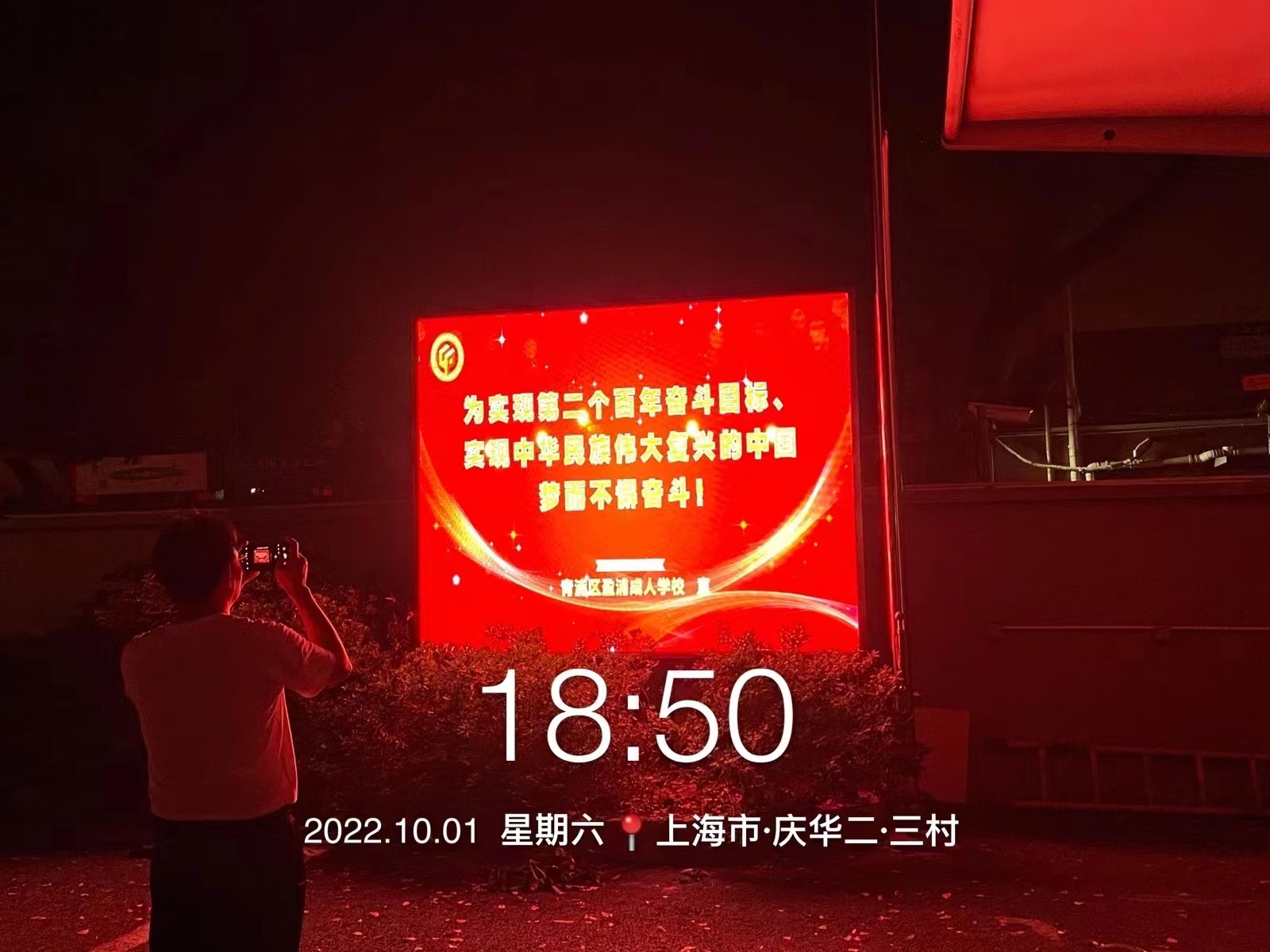 该项目位于上海市青浦区庆华一路84弄1号盈浦成人学校,产品规格为Q5-E室外全彩LED显示屏,长度约2.8米,高度约2米,于2022年10月完工。