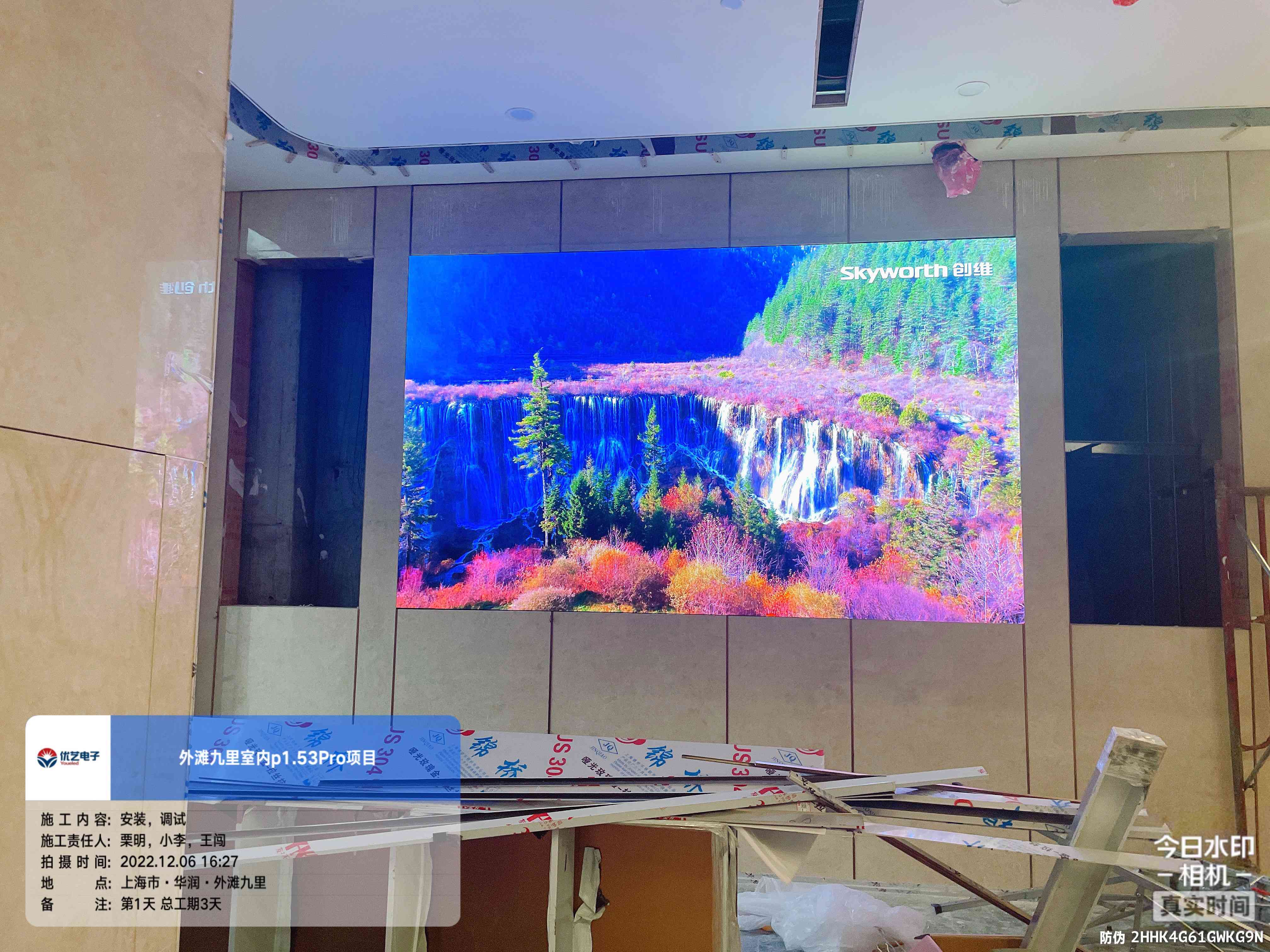 该项目位于上海市黄浦区白渡路398弄7号南外滩华润外滩九里(毛家园路),产品规格为Q1.5H室内全彩LED显示屏,长度约3米,高度约2米,于2022年12月完工。
