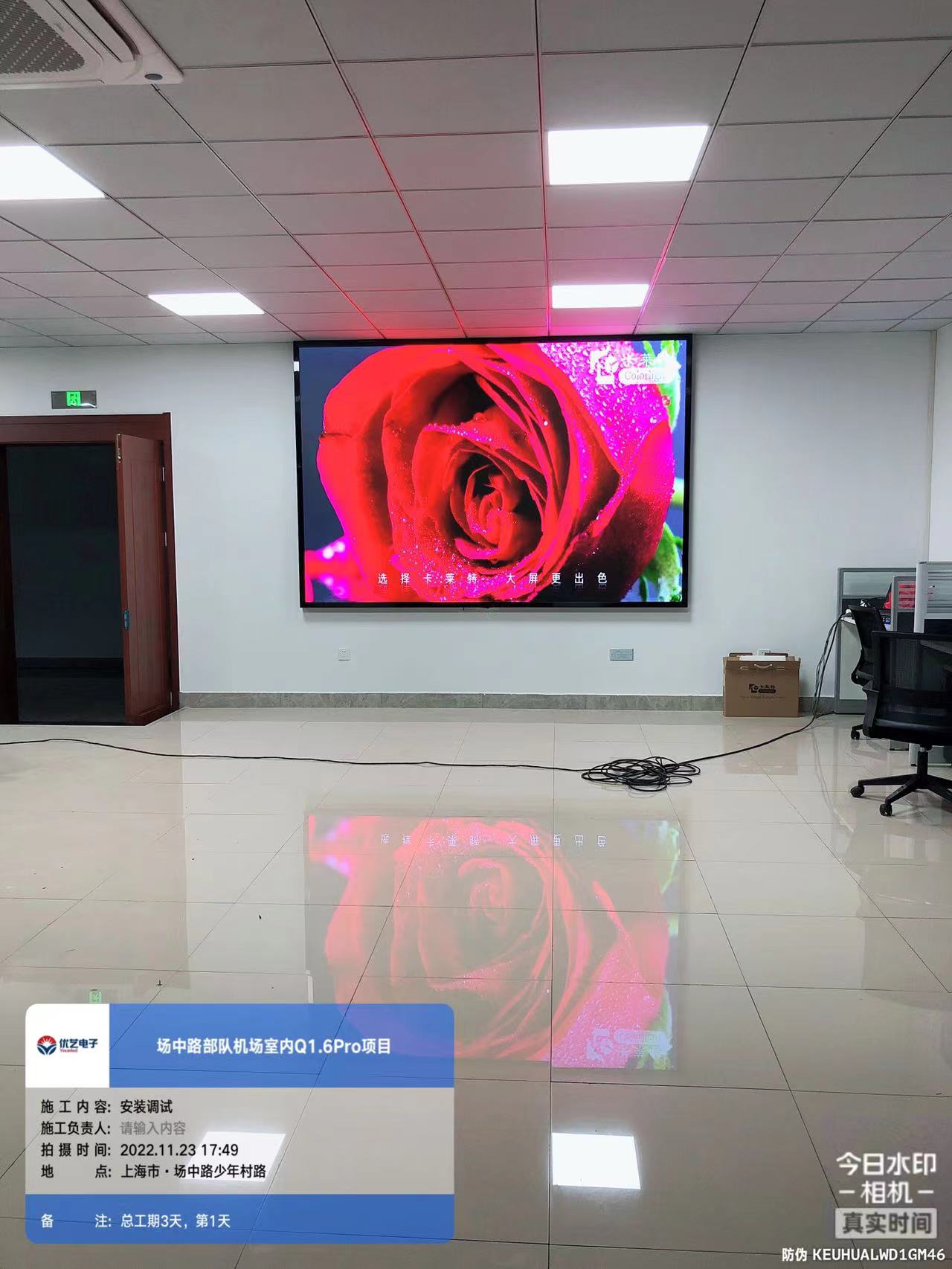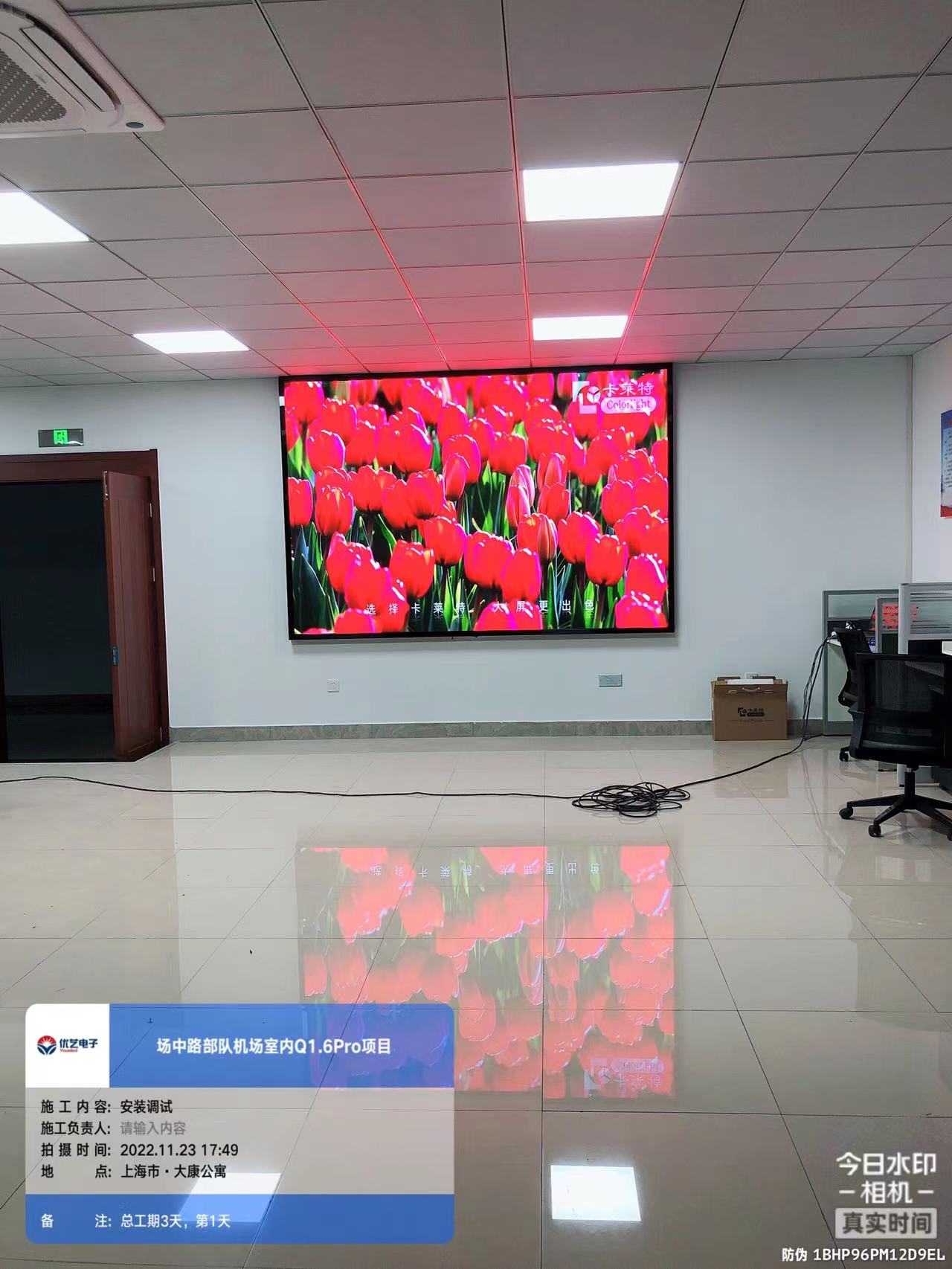 该项目位于场中路3135弄与少年村路交叉口往北100米部队机场,产品规格为Q1.6-pro室外全彩LED显示屏,长度约3米,高度约2米,于2022年11月完工。