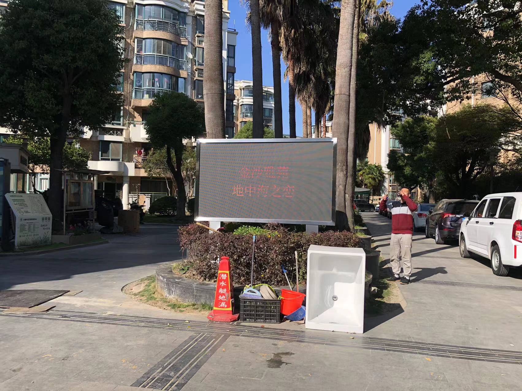 该项目位于上海市普陀区金沙江路2348弄金沙雅苑一期,产品规格为户外Q4-E全彩LED显示屏,长约2.3m,高约1.3m,于2023年3月完工。