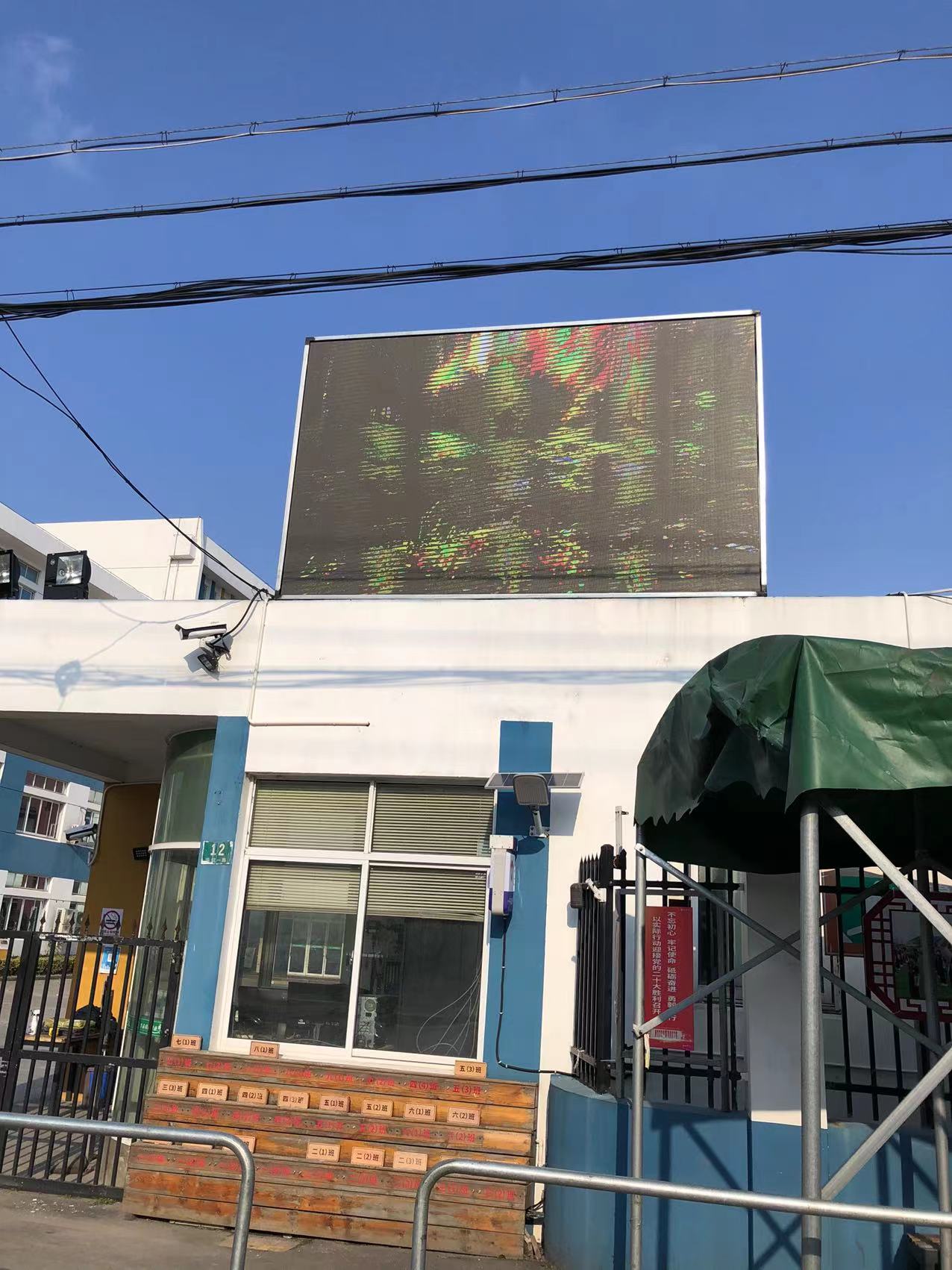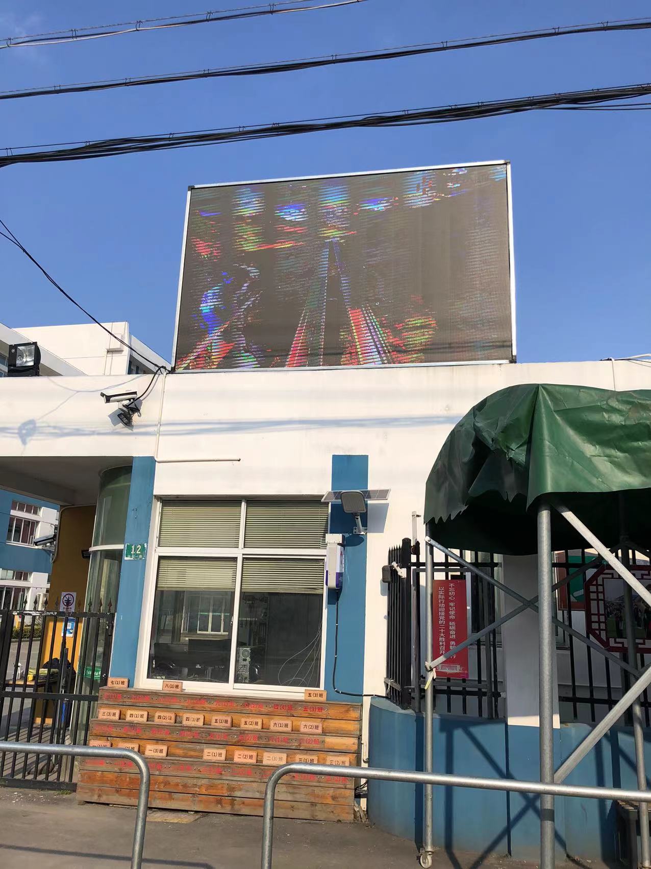 该项目位于上海市嘉定区华亭镇华谊一路12号华亭学校,产品规格为户外Q4E全彩LED显示屏,长约4m,高约2.5m,于2023年3月完工。
